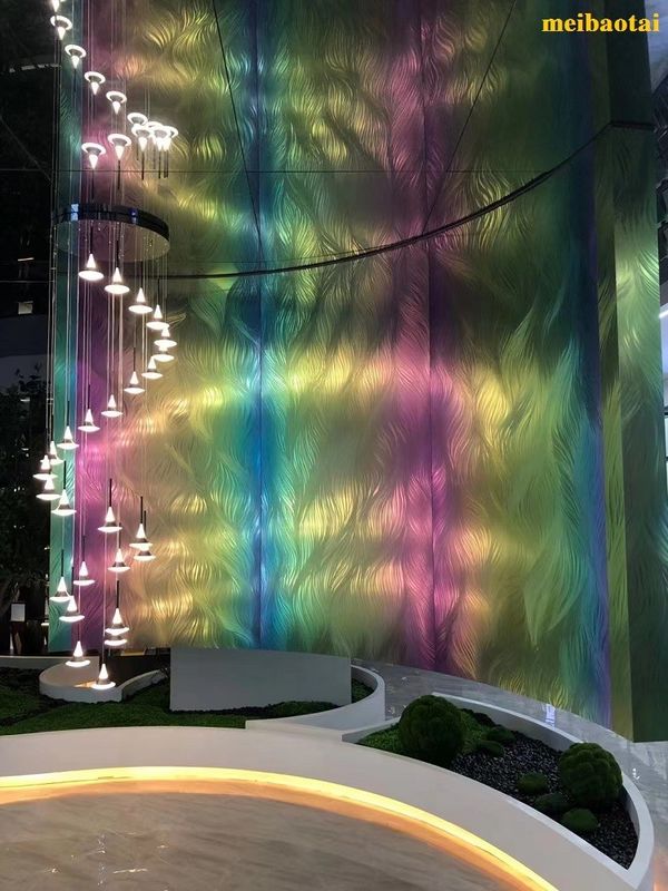 Lobby adapté aux besoins du client à extrémité élevé de décoration de feuille d'acier inoxydable de couleur d'arc-en-ciel de modèle de laser