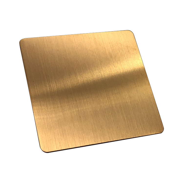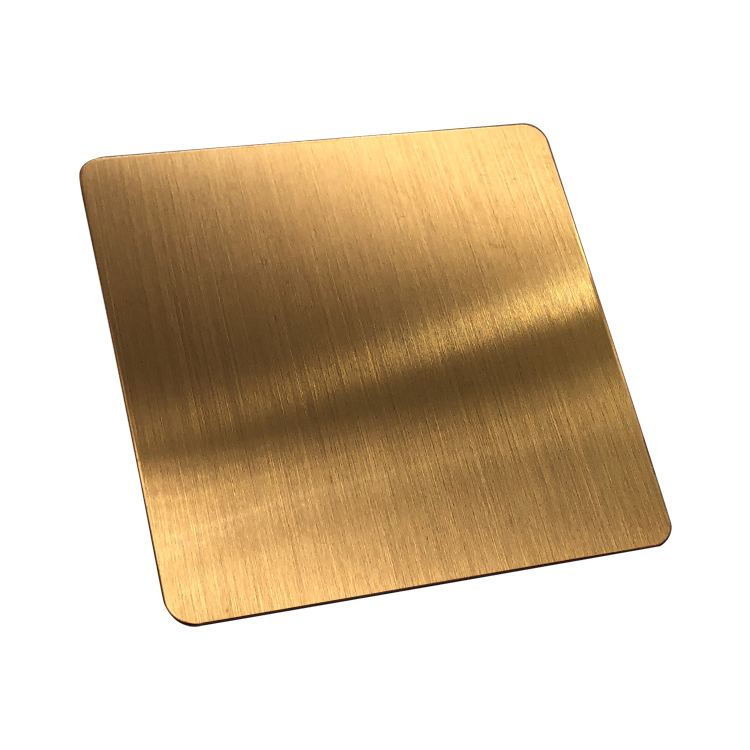 Plaque de tôle en acier inoxydable avec finition PVD Ti Gold 201, motif cheveux, bordure