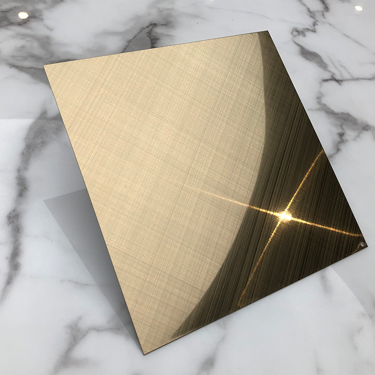 Four Feet Champagne Gold Mirror Cross Hairline Stainless Steel Sheet