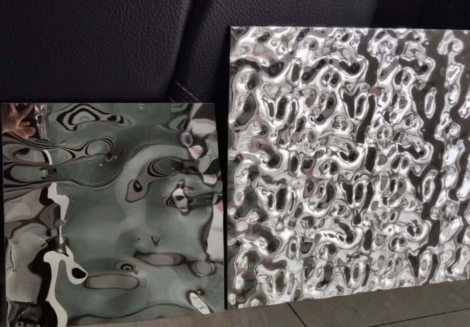 1. feuille d'acier inoxydable à ondulation d'eau,comme son nom l'indique,les motifs de surface de la feuille d'acier inoxydable ressemblent à des ondulations d'eau/ondes d'eau,avec des caractéristiques très décoratives dans la conception intérieure,l'architecture.